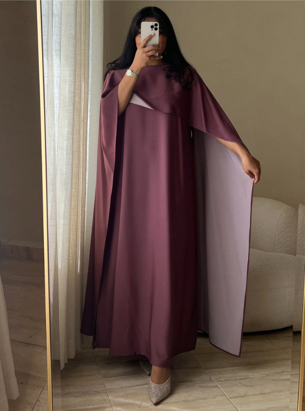 Lilah Abaya Dress in Plum/Soft Petal Dual Tone